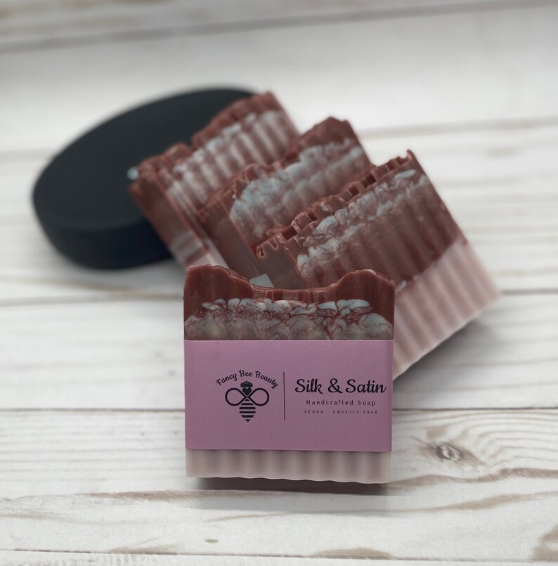 This soap is packed with skin loving ingredients and feels amazing on the skin. The silk amino acids are known to add shine and it helps create amazing lather. It also helps form a barrier which softens skin and improves moisture retention. They also help reduce fine lines and eliminate signs of aging. The amino acids found in these specific protein molecules can also rejuvenate skin tone, reduce wrinkles, and hydrate skin tissues. Shea Butter is very moisturizing. It is packed with Vitamin A and E and also will help ease inflammation. Coconut Oil aids in keeping skin moisturized and helping heal wounds. Argan Oil is known to help against sun damage, healing skin infections and has anti-aging effects.